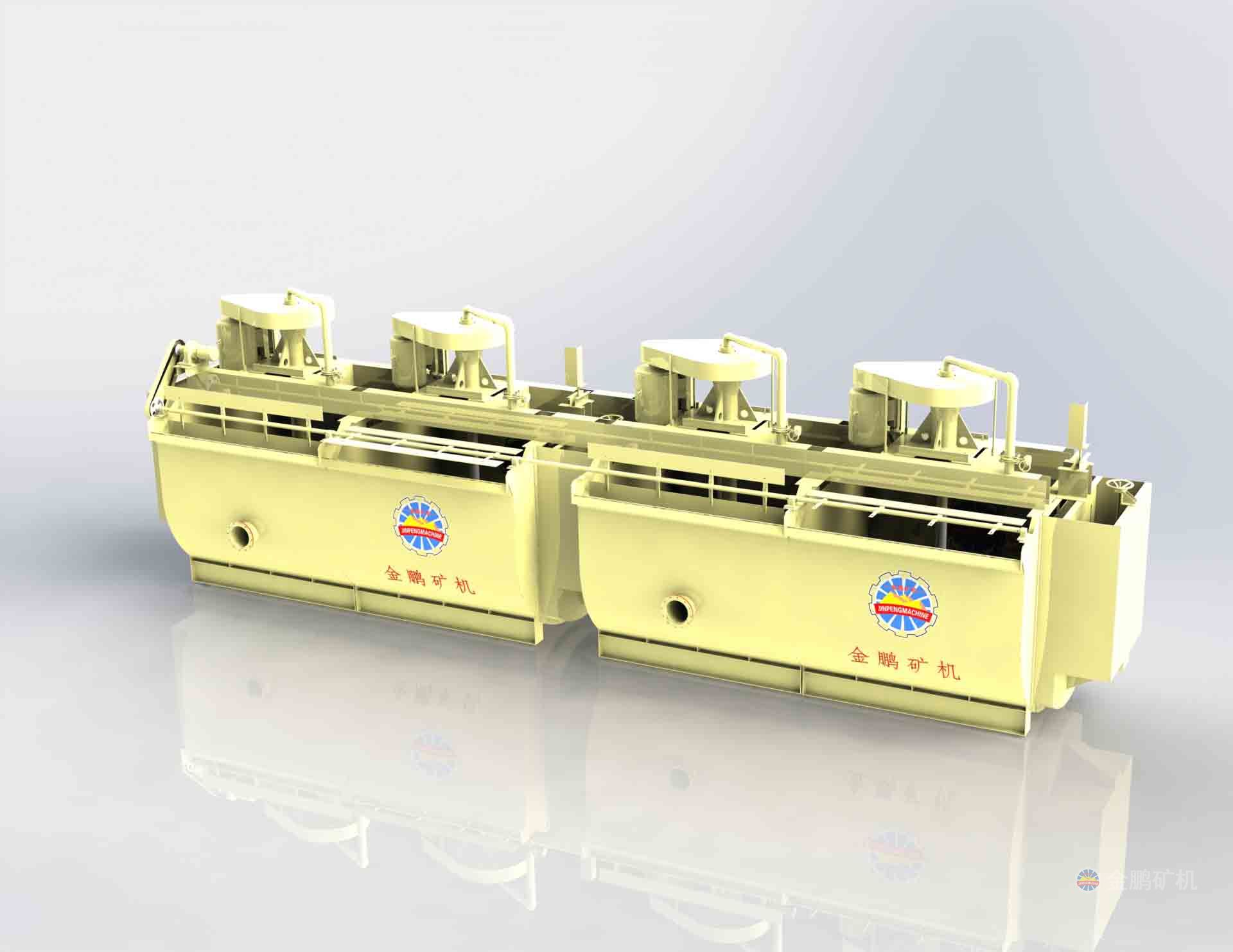 U形槽體,攪拌均勻,不易沉積;結構簡單,調整方便;能耗低;在同一水平配置吸漿槽而形成獨立的浮選回路。不需要泡沫泵;礦漿循環性能好,空氣彌散均勻,泡沫穩定懸浮性好,藥劑消耗少;配有先進的礦漿液面控制系統,給氣、給藥等操作和調節,可實現自動化控制。