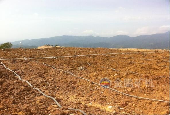 2、噴淋系統(tǒng):在鋪設(shè)好的礦堆上,設(shè)置噴淋系統(tǒng)。氰化溶液與礦堆反應(yīng)后,從礦堆底部滲出含金溶液(貴液),流入貴液池,經(jīng)貴液泵打入吸附柱,活性炭吸附后的溶液為貧液,貧液返回噴淋系統(tǒng)再利用。